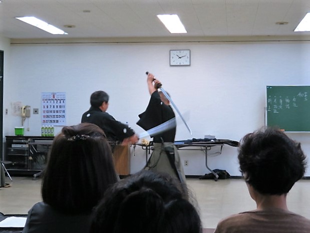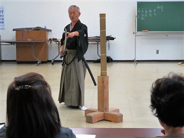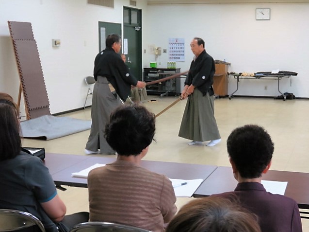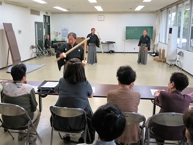 この講座は中央公民館主催ではなく幅広く物事を学びたいと思う有志の集まりで運営されており、今回立身流が学ぶ対象となりました。我々もいつもとは違う演武構成になるので非常にありがたい場を提供していただけました。